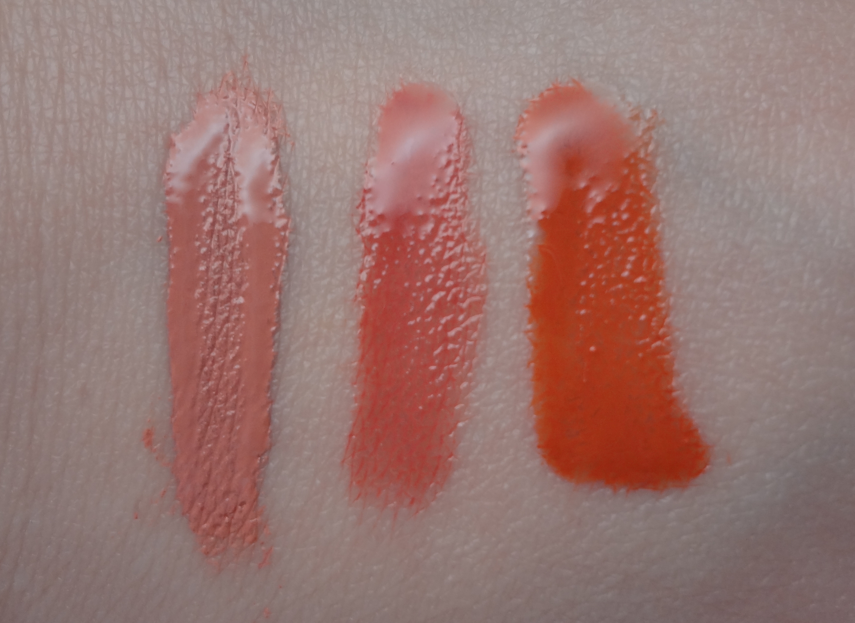 Clockwork (rich terracotta with orange undertone) This color swatched a lot more orange on my hand than it appears on my lips. Its actually more wearable than you may think. There is a definite orange undertone, but it takes on a more coral-y look and you pick up more of the terracotta promise in person. I originally wanted to say that I didn’t see myself ever wearing or using this one solo, but I wore it around the house after the swatch and it grew on me. Conflicting opinion aside, it blends nicely with other shades to add some warmth if all else fails.