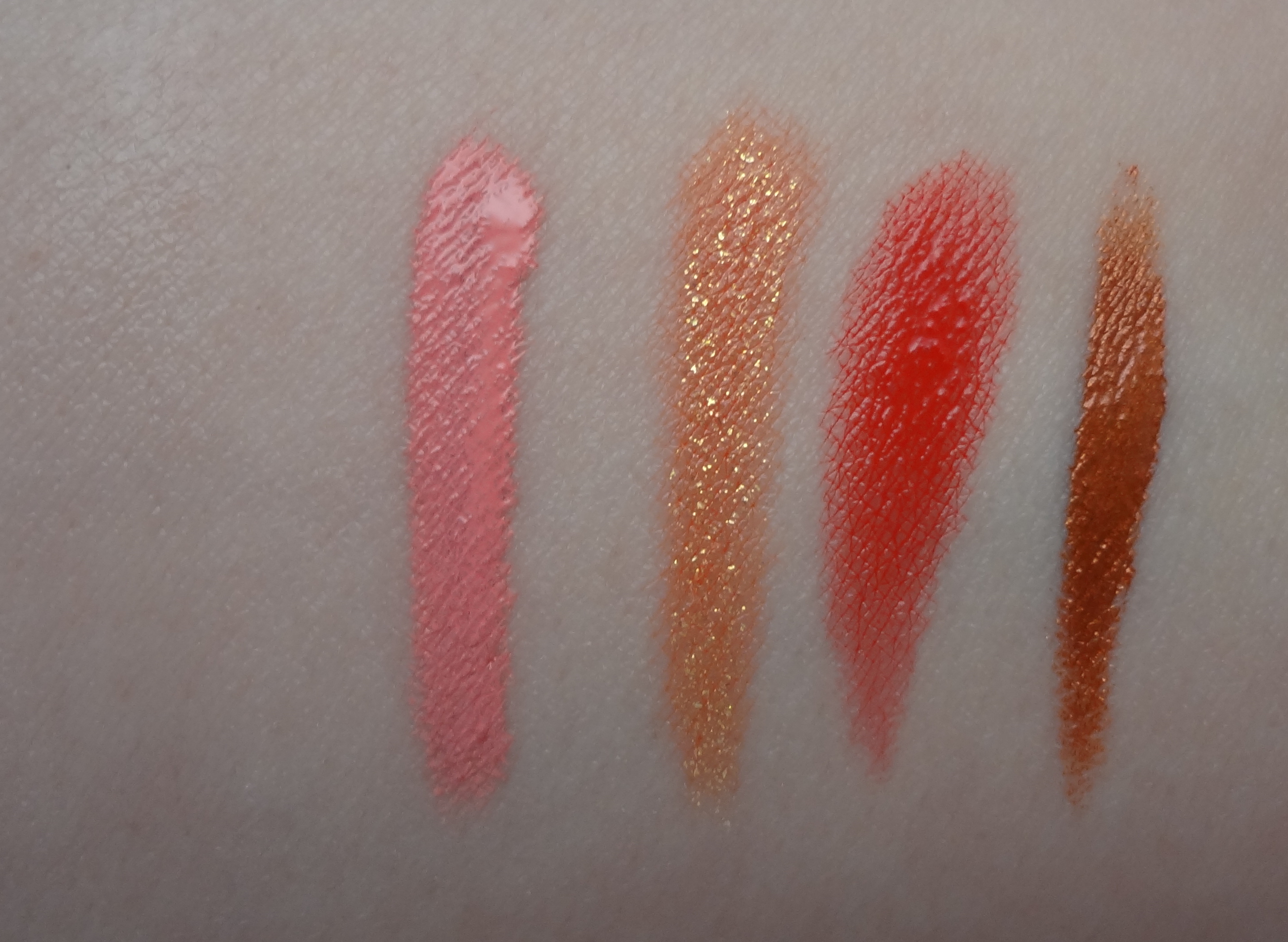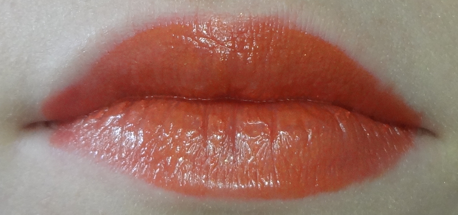 Authentic actually looks better on the lips than I expected from its deep, metallicy bronze look in the tube. On the lips, its sheers out a bit more and more of the copper color comes out, giving it an orange/copper color with golden shimmer. Again, the metallic finish–while very shimmery–is more forgiving to dry lips and wears really well.