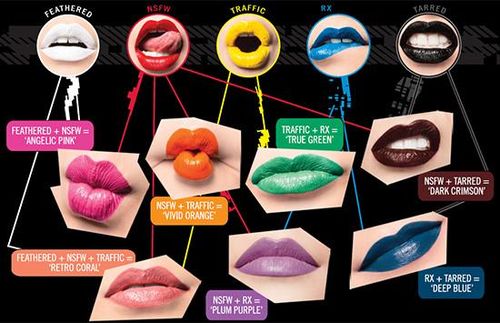 Thankfully, this color also went on the most smoothly of all five colors. Its a bold, beautiful red that makes for an awesome statement lippie. This is the quintessential bright, true red I’ve been searching for my whole life and I think that it looks fantastic alone, and will also look awesome mixed in to other colors to punch up their redness. I mean, come on; look at that coral they made with NSFW/Traffic/Feathered on the package insert? Soooooo up my alley! I can’t wait to try that one out!