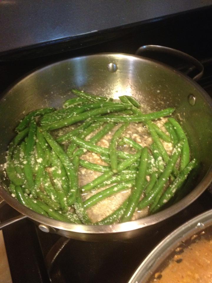 This one was another stupid easy recipe: it really is just sauteing the beans in butter until crisp-tender (or completely tender, if that’s your preferred texture), then adding the Parmesan and stirring until it melts down over them a bit. Serve and devour.