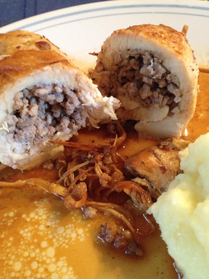 pork stuffed chickenFirst up is the “Rolled Fillets of Breast of Chicken with Pork and Rosemary Filling” (pg. 340)