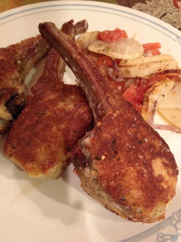 Thin Lamb Chops Fried in Parmesan BatterI love lamb, but my husband… Not so much. So, lamb is something I save for nights when he won’t be home for dinner and I’m on my own. I didn’t think I could prepare it in a way more delicious than my standard white wine-garlic-oil marinade… Until I tried “Thin Lamb Chops Fried in Parmesan Batter(pg. 412)