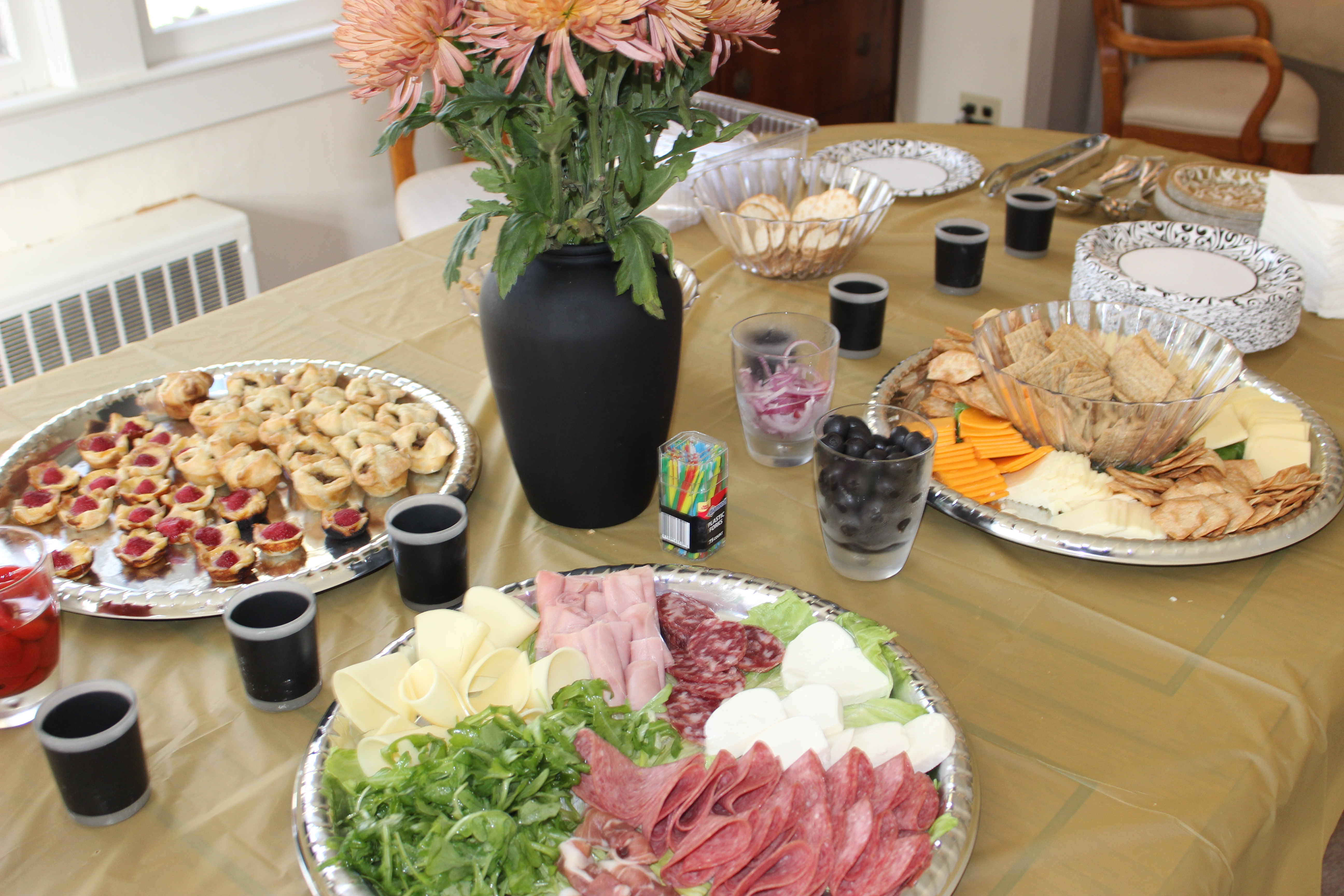 If any of you followed my previous blogging years, you probably are familiar with my Essentials of Classic Italian Cooking posts and know that  I’m something of a foodie. (Unashamedly so, really. I just love good food!) So, I was thrilled by the smorgasbord of delicious food we had for our guests, which included things like antipasto platters, brie and raspberry in puff pastry, stuffed mushroom puffs, Caprase salad, and bourbon-brown sugar  candied bacon…